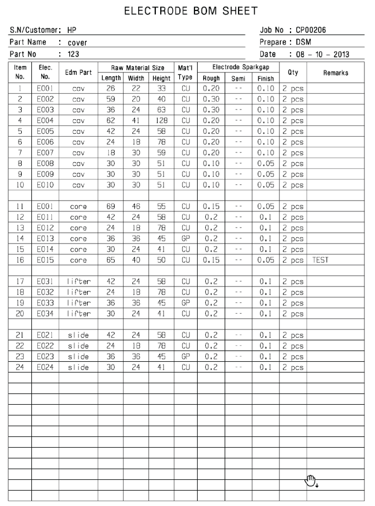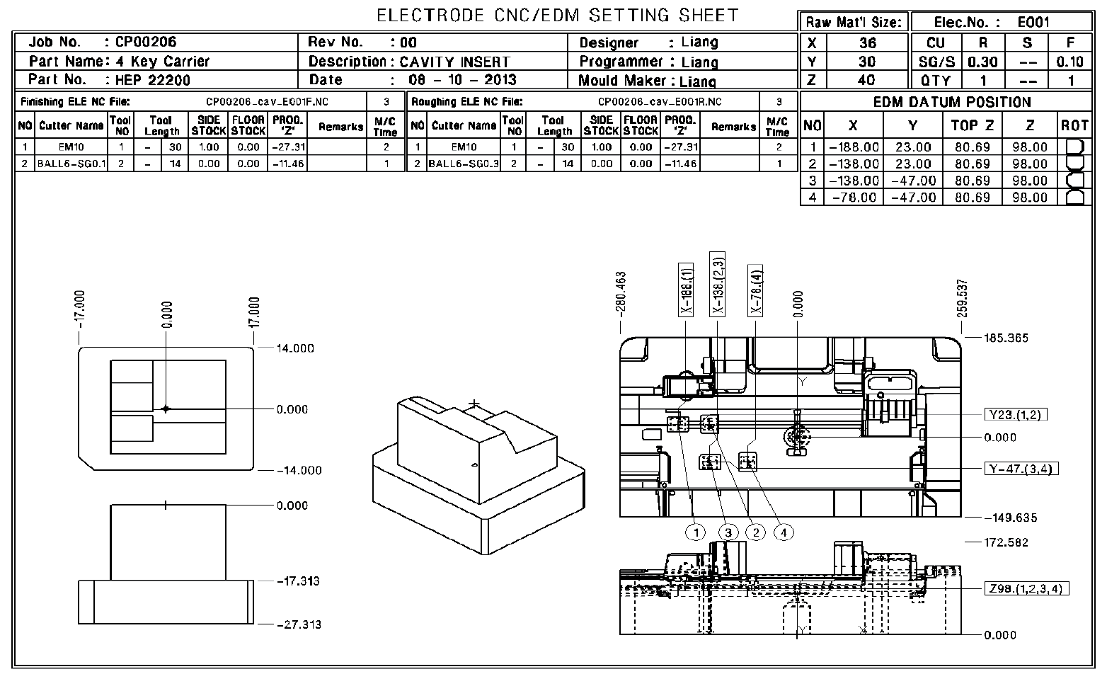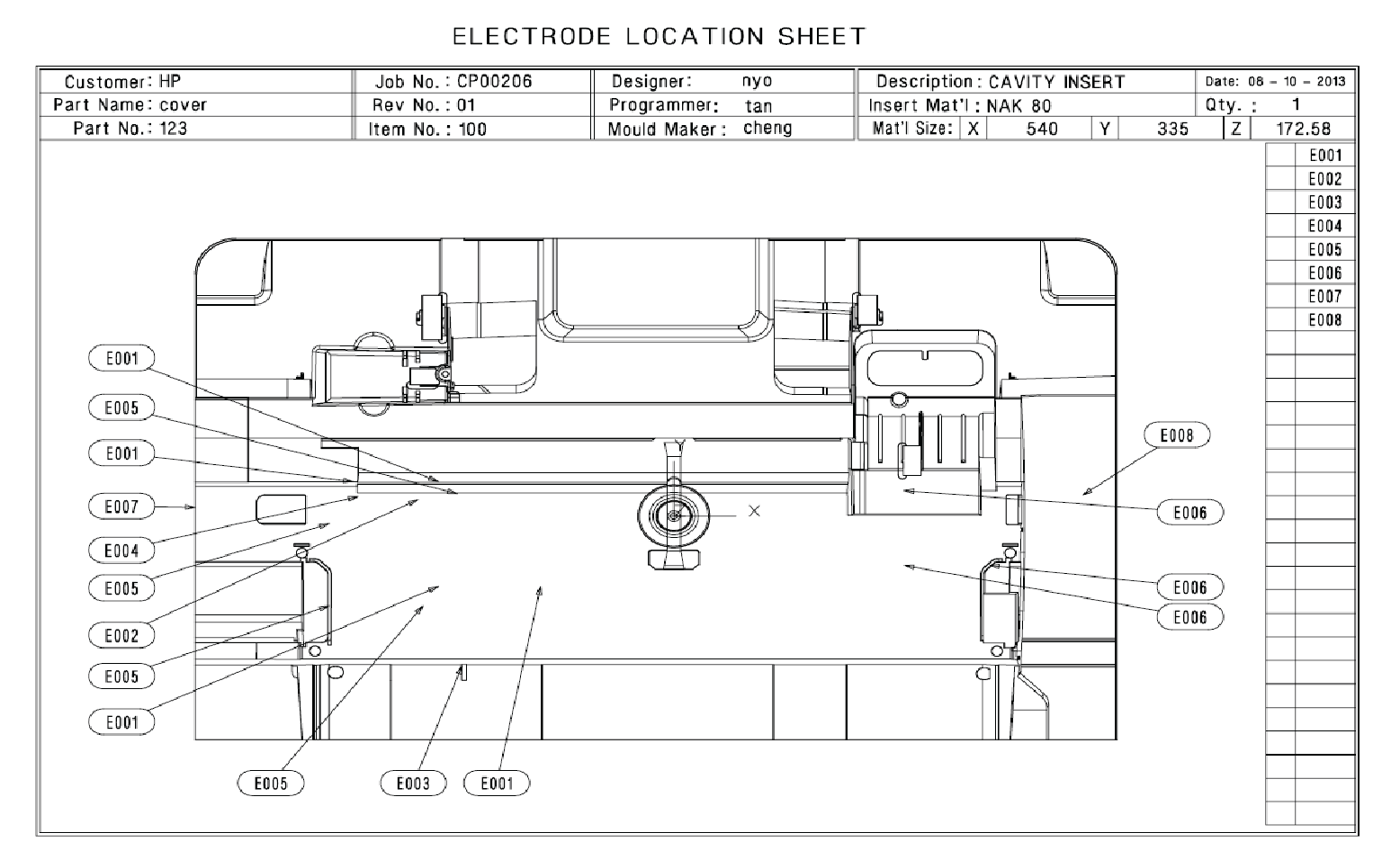 - Auto electrode Drafting for CNC & EDM setting, include electrode information, CNC programming list, EDM position and electrode & insert views